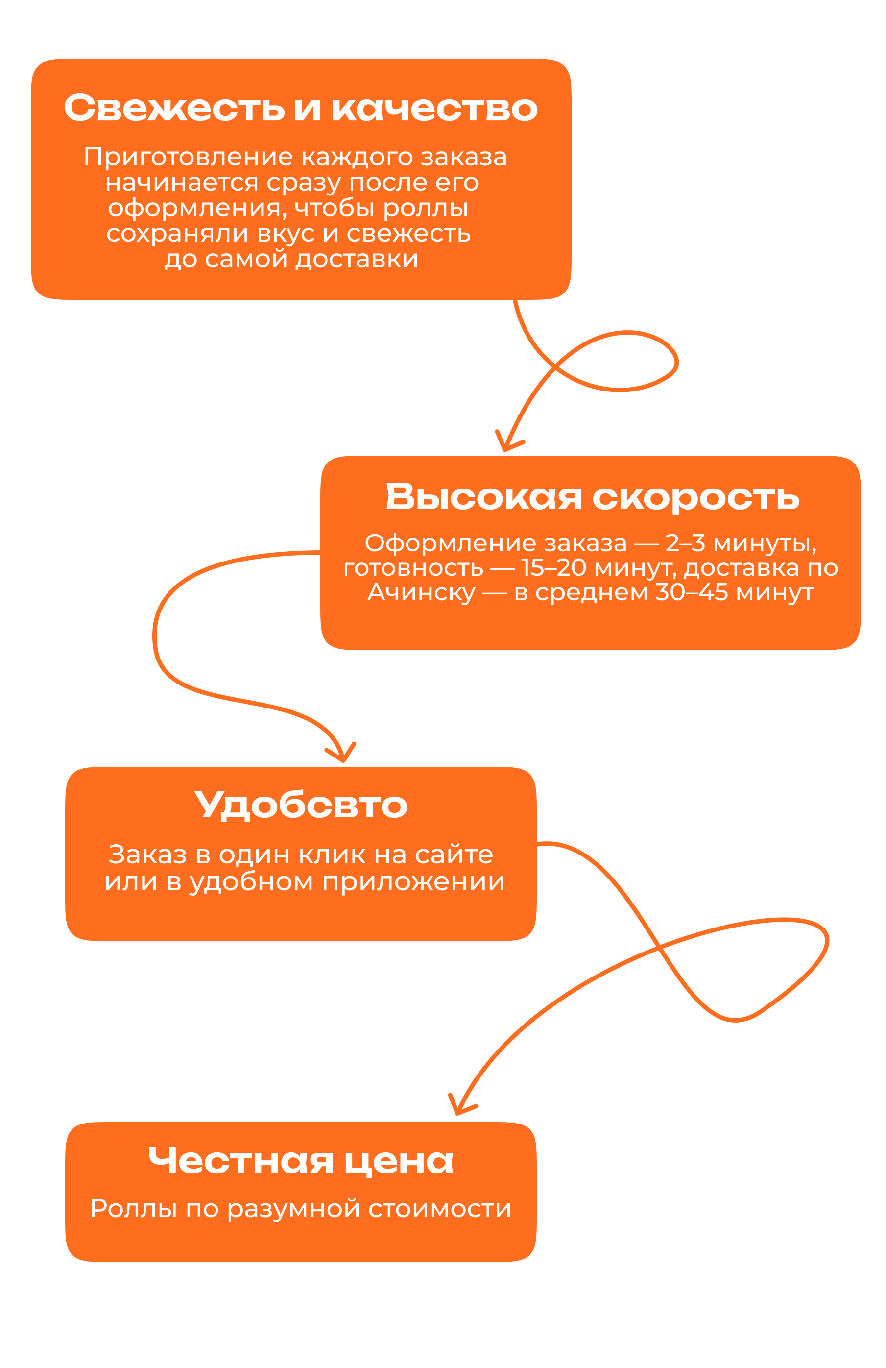 3. Доступность: мы стремимся сделать доставку роллов доступной - без элитарности, но с достойным качеством.